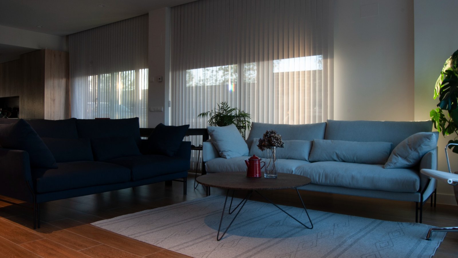 El diseño de interiores del salón ha sido clave para aportar personalidad a este hogar, convirtiéndolo en un área de vida continua que refleja calidez, cercanía y tradición. La paleta de colores predominante incluye blancos y tonos neutros, que multiplican la luminosidad y la sensación de amplitud del espacio. Para las cortinas, se seleccionaron materiales ligeros y claros, asegurando que permitan el paso de luz natural y conecten visualmente con el jardín, un elemento destacado de la vivienda.